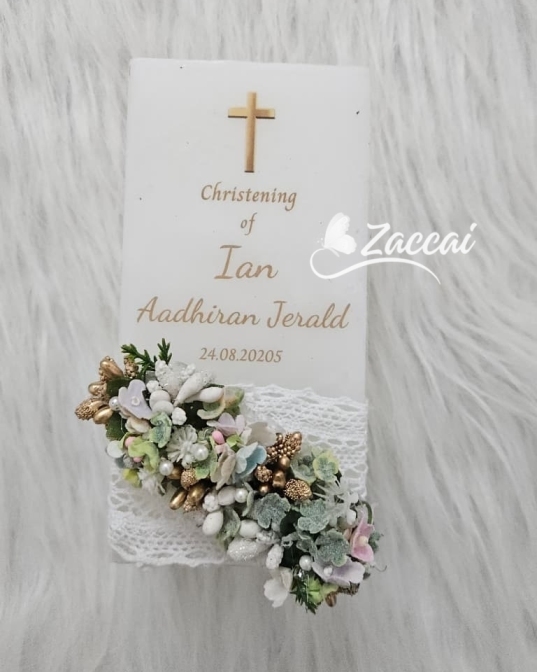 Handcrafted baptism candle—designed with love for your little one’s special day, personalized with your baby’s name.
