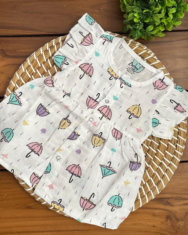 Muslin Frill Frock 3-6M- Umbrella